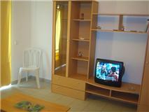 Na sala encontram-se dois sofás cama, um armário com TV e DVD e no quarto uma cama de casal, um armário onde pode encontrar almofadas, edredões e cobertas. Neste compartimento também existe TV. O quarto é muito airoso pois tem um grande janelão, que permite desfrutar da vista com toda a privacidade. De manhã pode ouvir o chilrear dos pássaros que usam a zona verde, próxima do prédio, para nidificar.